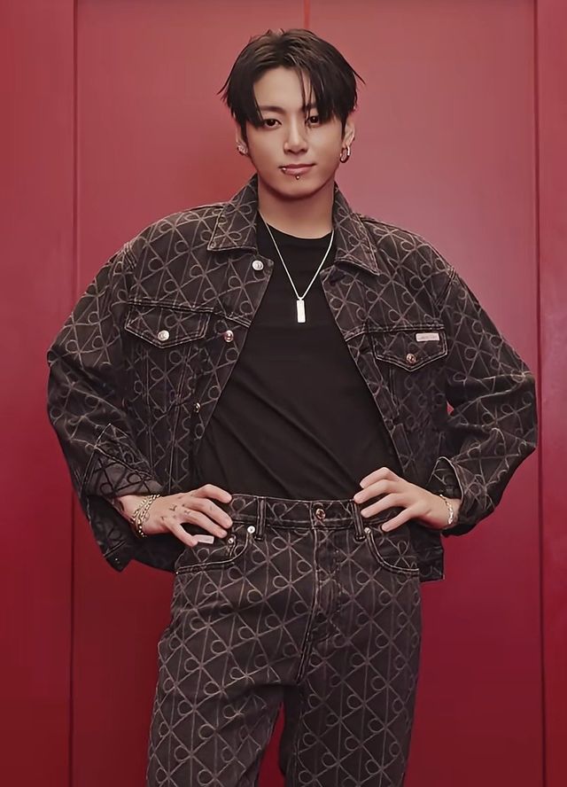 이어진 장면에서는 캘빈클라인의 스테이트먼트 데님 셋업을 착용한 정국이 엘리베이터 밖으로 걸어나오며 전혀 다른 무드를 보여줬다. 탄탄한 피지컬 위로 자연스럽게 흐르는 데님 실루엣, 살짝 올려진 눈썹과 여유로운 윙크는 마치 한 편의 화보 같았다.
