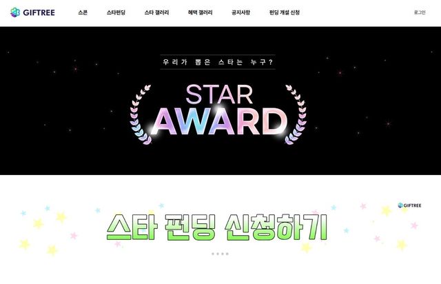 스타펀딩 화면. / 기프트리 홈페이지