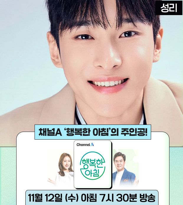 가수 성리가 11월 12일(수) 7시 30분 채널A ‘행복한 아침’ 생방송에 출연한다.