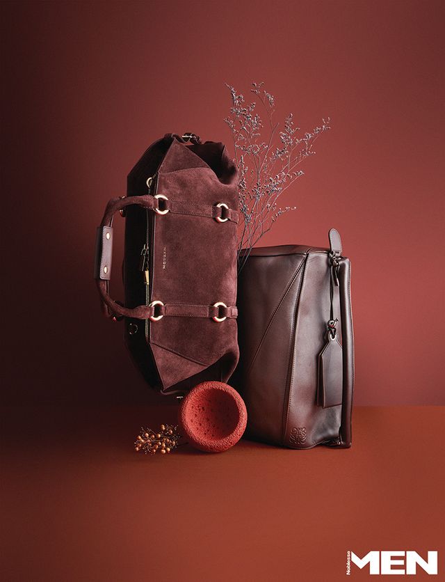 셰브런 패턴의 페코라 네라Ⓡ 울 소재가 포근한 촉감을 선사하는 룸 L25 백 Loro Piana, 은은한 광택과 그러데이션이 중후한 매력을 완성한다. 시티 고미노 드라이빙 슈즈 Tod’s.