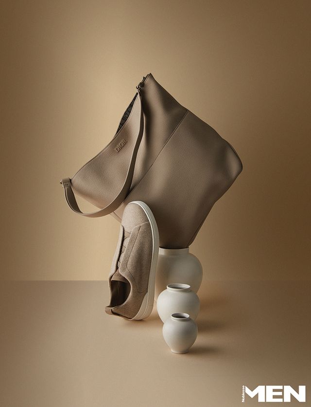군더더기 없이 간결한 구조와 실용적 포켓이 절제미를 드러낸다. 디올 프리베 호보 백 Dior Men, X자 형태의 밴딩 스트랩이 신발의 정체성을 아우른다. 트리플 스티치 스니커즈 Zegna.