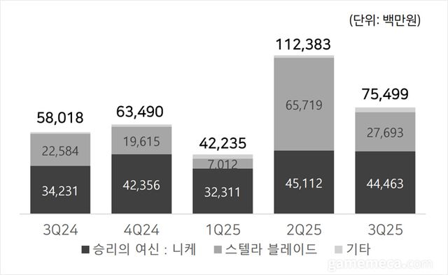 ▲ 시프트업 2024년 3분기부터 2025년 3분기까지 게임별 매출 추이 (자료출처: 시프트업 IR 페이지)