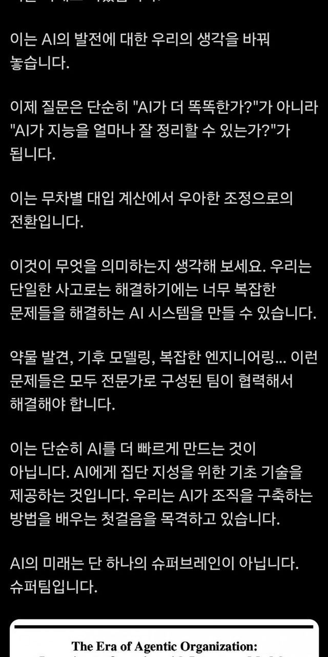 또 그는 "부서 간 경계가 허물어지고 직원들은 AI 에이전트와 협업하는 범용 인력으로 변모할 것"이라며 "앞으로 모든 팀은 사람과 AI 에이전트가 함께 구성하는 유기체가 될 것"이라고 전망했다. 조직 구조 자체의 변화까지 예고한 것이다.