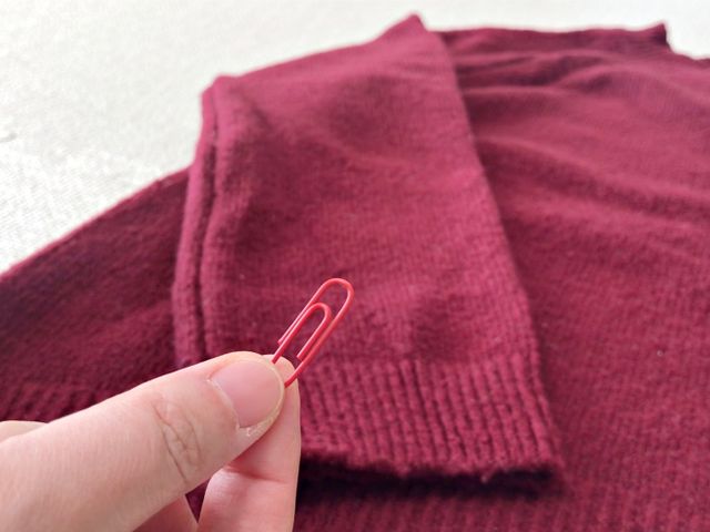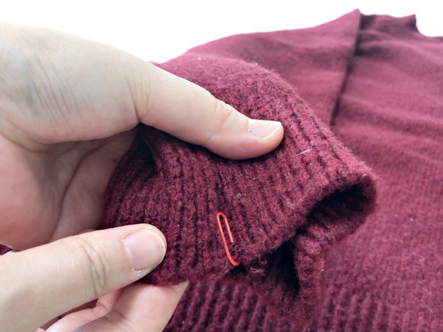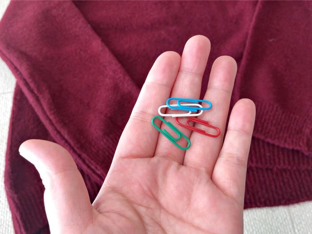 눈에 띄지 않도록 니트 색과 비슷한 작은 클립을 쓰면