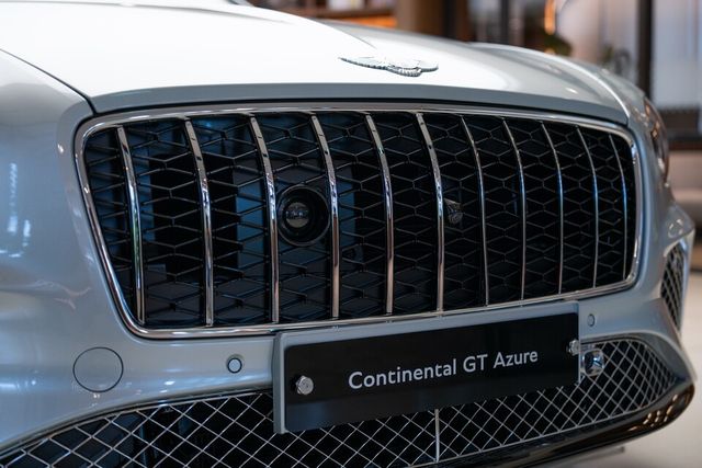 컨티넨탈 GT 아주르의 전면부에는 벤틀리의 상징적인 블랙 매트릭스 그릴 위에 11개의 크롬 버티컬 베인이 더해져 웅장함과 고급스러움을 극대화했으며, 범퍼 하단의 공기흡입구에도 밝은 크롬 컬러의 그릴이 장착됐다. 새로운 디자인의 아주르 전용 22인치 휠과 프론트 펜더에 부착된 아주르 배지는 차별화된 외관 디자인을 완성한다.