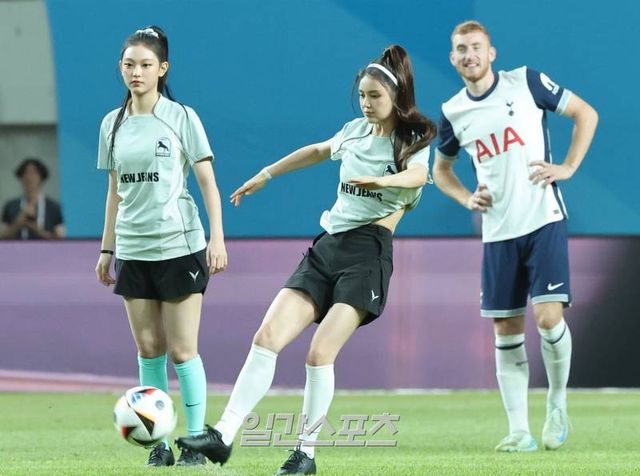 잉글랜드 프리미어리그(EPL) 토트넘 홋스퍼와 독일 분데스리가 바이에른 뮌헨의 2024쿠팡플레이시리즈 2차전이 3일 오후 서울 마포구 서울월드컵경기장에서 열렸다. 경기 전 그룹 뉴진스 민지가 멤버들과 함께 시축을 하고 있다. 상암=김민규 기자 mgkim1@edaily.co.kr /2024.08.03/