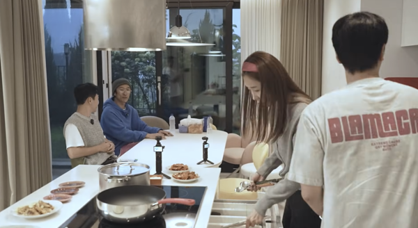 마침내 도착한 김종민과 빽가는 넓고 깔끔한 신혼집에 감탄하며 "너 성공했다"고 축하했다. 이어진 식사 시간에는 문원이 주방에서 직접 양배추 에피타이저, 칠리 만두 볶음, 된장국까지 푸짐한 한 상을 차려내 눈길을 끌었다.