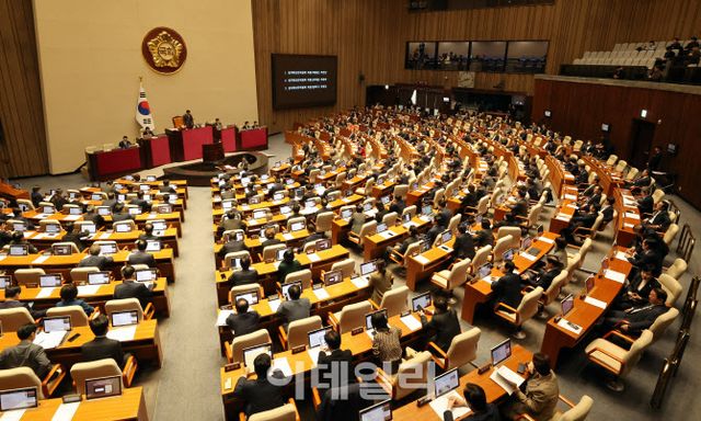 국회는 13일 본회의를 열고 55개 법안을 상정했다. 대부분 여야 이견 없이 소관 상임위원회를 통과한 비쟁점 법안들이다. 이 가운데 납품대금 연동제를 에너지 요금까지 확대하는 상생협력법이나, 비주택 건축물의 용도 변경 요건을 완화하는 건축물 분양법, 택배노동자의 표준계약서 사용을 의무화하는 생활물류서비스산업발전법 등 7건은 이재명 정부에서 국정과제로 추진 중인 법안이다.