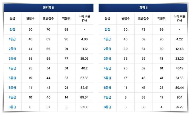 2025학년도 수능 '물리학2' '화학2' 등급컷(2024.11.14 수능) / 메가스터디