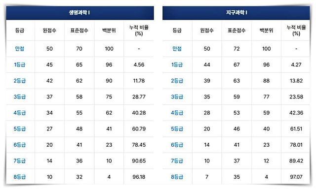 2025학년도 수능 '생명과학1' '지구과학1' 등급컷(2024.11.14 수능) / 메가스터디