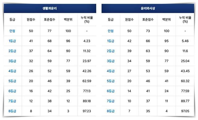 2025학년도 수능 '생활과윤리' '윤리와사상' 등급컷(2024.11.14 수능) / 메가스터디