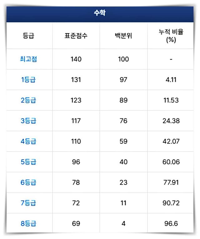 2025학년도 수능 '수학' 등급컷(2024.11.14 수능) / 메가스터디