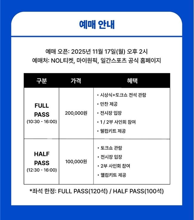 예매는 오는 17일 오후 2시부터 NOL 티켓, 마이원픽, 일간스포츠 공식 홈페이지에서 가능하다.