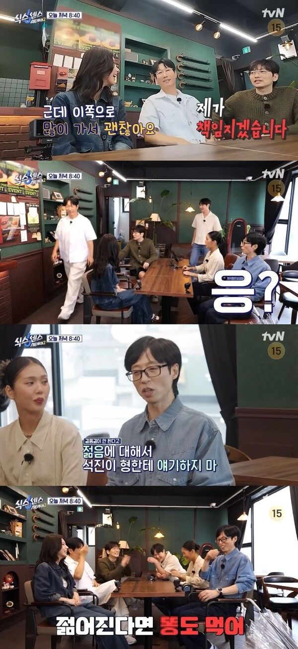 유재석은 "젊음에 대해서 석진이 형한테 얘기하지 마라"라고 한다.