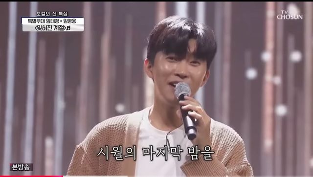 해당 영상은 TV조선 예능 ‘신청곡을 불러드립니다-사랑의 콜센타’ 보컬의 신 특집 무대를 담고 있다. 이날 방송에서 임영웅은 임태경과 함께 ‘잊혀진 계절’을 듀엣으로 선보였다.