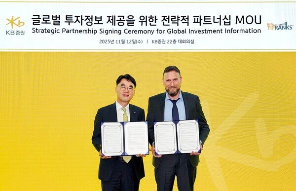 KB증권은 지난 12일 글로벌 투자정보 플랫폼 기업인 'TipRanks(팁랭스)'와 전략적 파트너십을 위한 업무협약(MOU)을 체결했다고 14일 밝혔다.