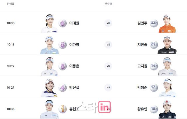 방신실은 박혜준을 매치 상대로 택해 장타 대결이 성사됐고, 상금왕 홍정민은 한진선, 한국여자오픈을 제패한 이동은은 동갑내기이자 올해 2승을 거둔 고지원과 맞대결하며 또 하나의 흥미로운 조합을 만들었다.