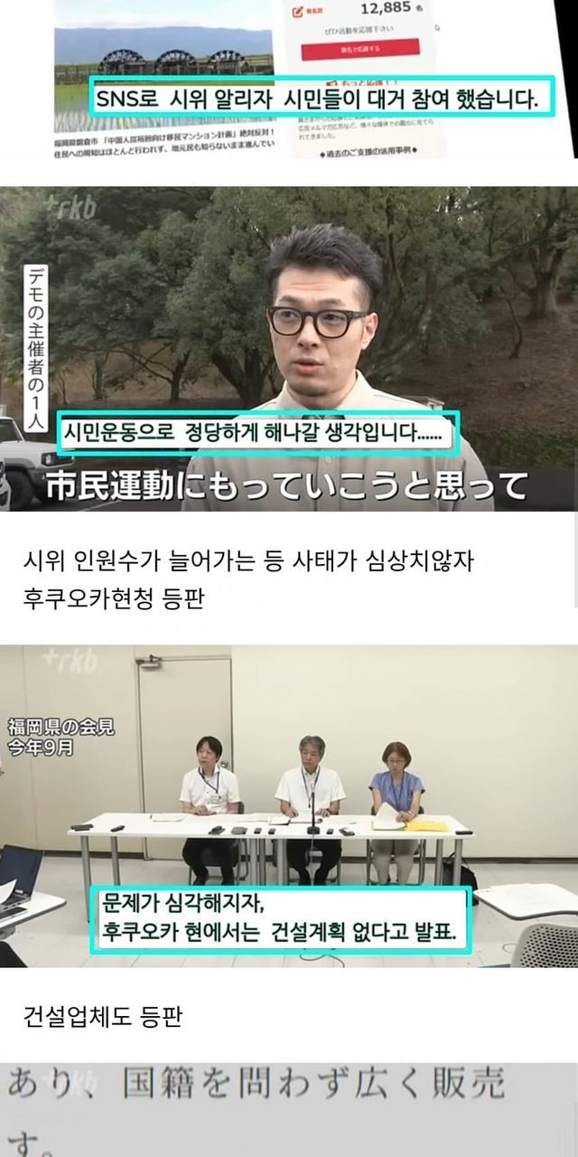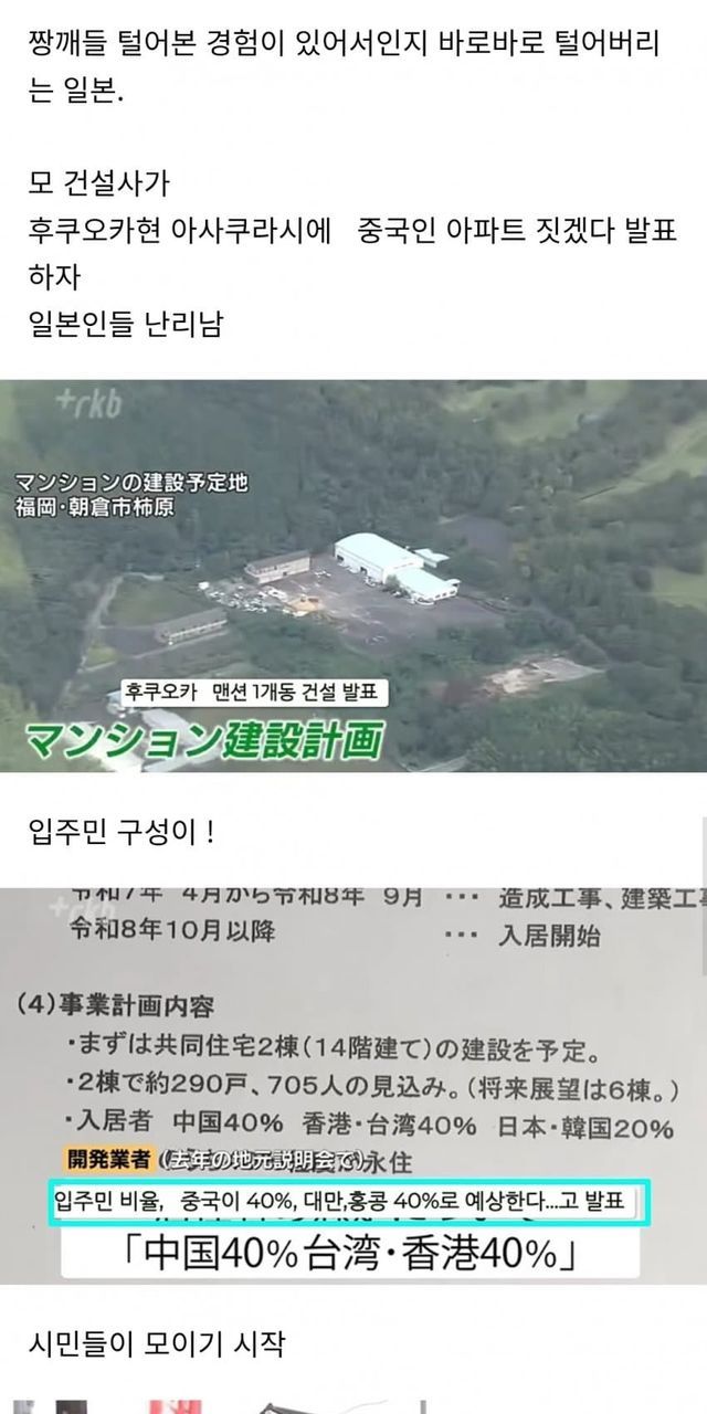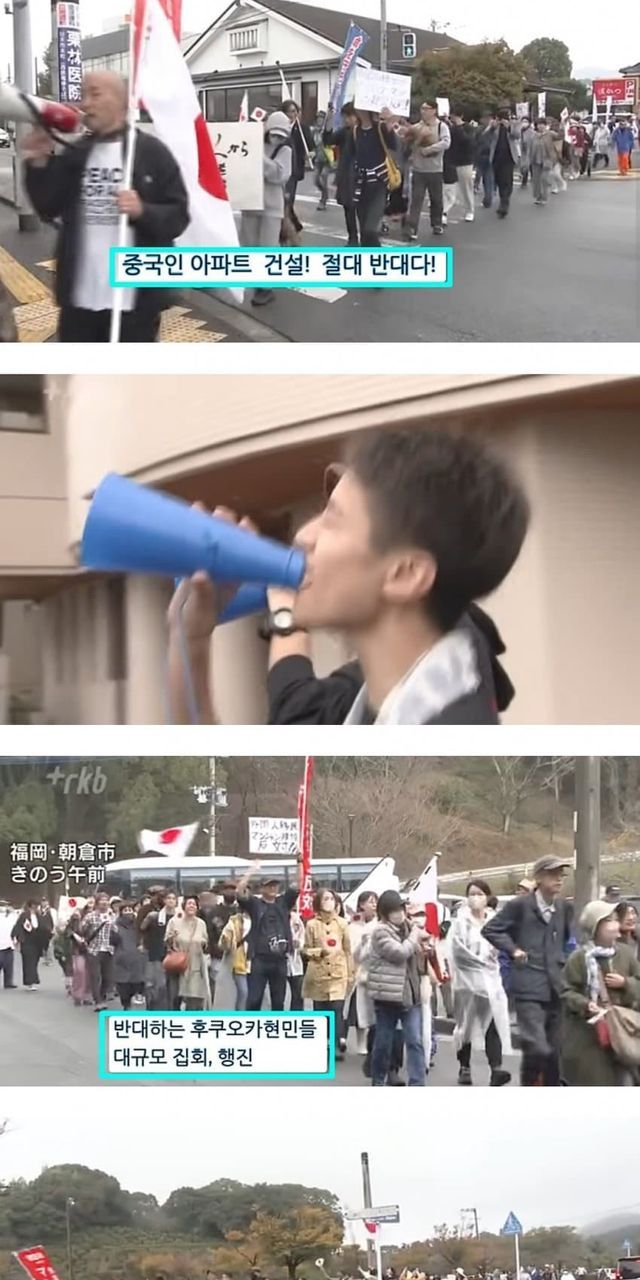 짱깨 전용 아파트 단지 만든다고해서 후쿠오카 사람들이 시위하고 난리났긔