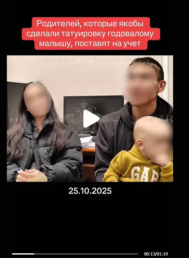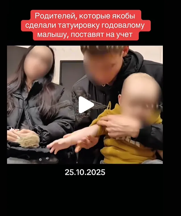 부모는 펜을 사용하여 아기의 팔에 문구를 새겼고, 영상에서 아기가 피곤해서 비명을 지르고 울었을 뿐이라고 말했습니다.