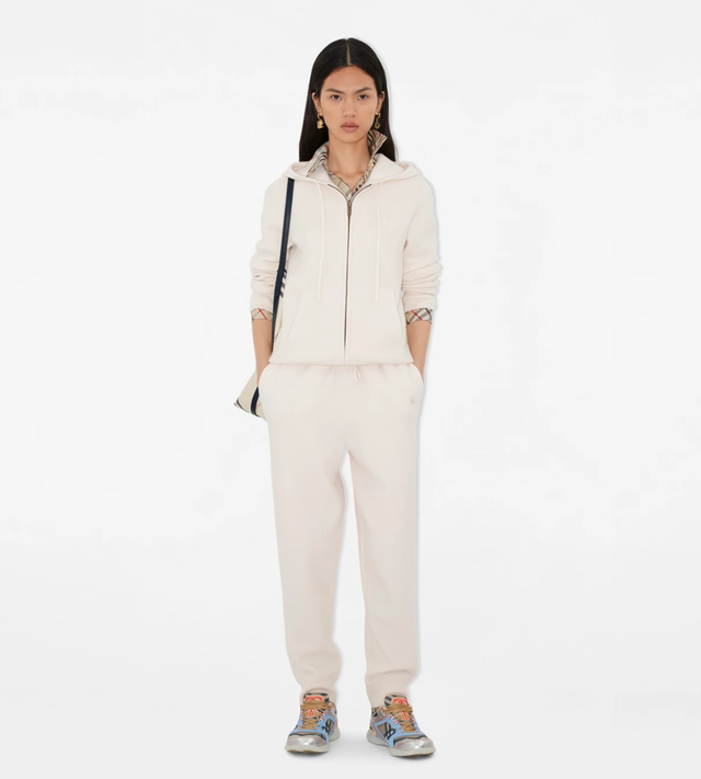 최상의 소재를 사용하는 것으로 정평이 난 로로 피아나의 화이트 스텔란 트라우저는 넉넉하면서도 우아하게 떨어지는 핏 감이 눈길을 끈다. 버버리의 캐시비어 블렌드 조깅 팬츠는 밑단을 잡아주어 활동성과 캐주얼한 무드를 살린 아이템으로 데일리 룩에 세련된 이미지를 더하고 싶을 때 추천한다.
