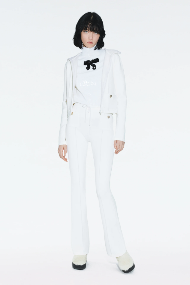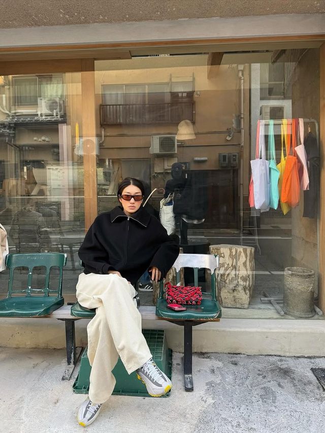 화이트 팬츠를 데일리 스타일로 부담 없이 즐기고 싶다면 강민경처럼 여유 있는 스트레이트 핏을 선택하는 것이 현실적이면서도 세련된 해답이 될 수 있다. 군더더기 없이 떨어지는 과하지 않은 넉넉한 핏은 상의의 볼륨과 관계없이 안정적인 비율을 만들어 주기 때문. 이 경우 포근한 플리스나 양털 점퍼와 매치하면 상·하의 소재 대비 덕분에 룩 전체를 쉽게 정돈할 수 있어 스타일링에 대한 고민이 적어진다는 것도 장점. 밑단이 신발 위로 부드럽게 흐르면서 다리가 길어 보이는 효과까지 연출한다. 과한 디테일 없이도 깨끗한 무드와 편안함을 동시에 잡을 수 있는 조합으로, 캐주얼한 겨울 스타일링에 가장 손쉽게 적용할 수 있다.