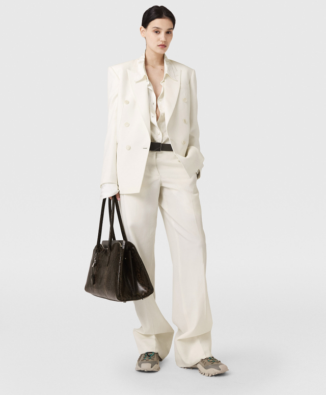캐주얼 룩 외에 일상 룩도 고루 소화할 수 있는 스트레이트 핏의 화이트 팬츠는 소재와 관계없이 활용범위가 넓다. 스텔라 매카트니의 플리츠 스트레이트 팬츠는 여유 있는 수트 스타일링까지 소화하면서도 스니커즈와 매치할 수 있는 넓은 스펙트럼을 보여준다. 구찌의 코튼 캔버스 팬츠는 보다 캐주얼하고 활동적인 무드로 연출할 수 있다.