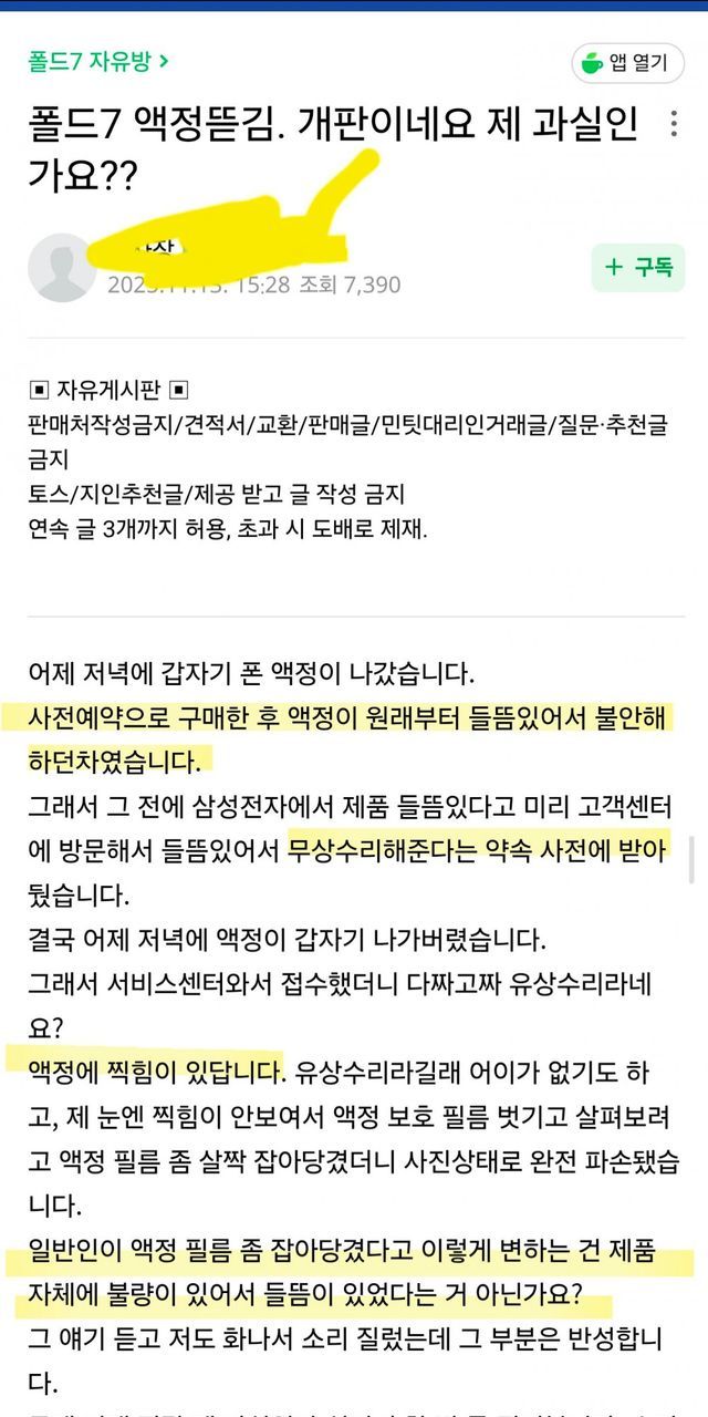 6. 댓글보면 액정필름 강제로 뜯으면 안된다는걸