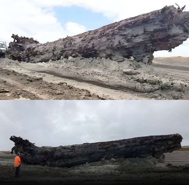 늪지대 깊은 곳에 파묻혀있던 약 4만년 전의 고대 카우리 나무