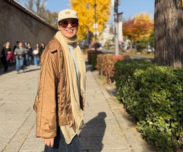 공개된 사진엔 경복궁 인근을 산책하며 가을 무드를 만끽 중인 박미선의 모습이 담겼다. 사진 속 박미선은 환한 미소로 건강한 복귀를 알렸다.