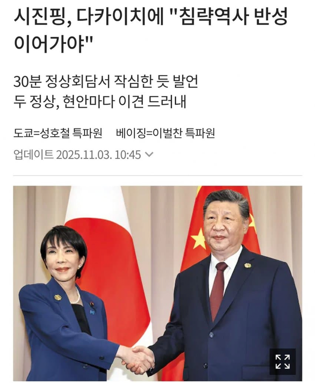 日 다카이치 총리, 시 주석에 "홍콩, 신장위구르 지역 등 인권 문제 우려 전달"시진핑, 다카이치에 “침략역사 반성 이어가야”