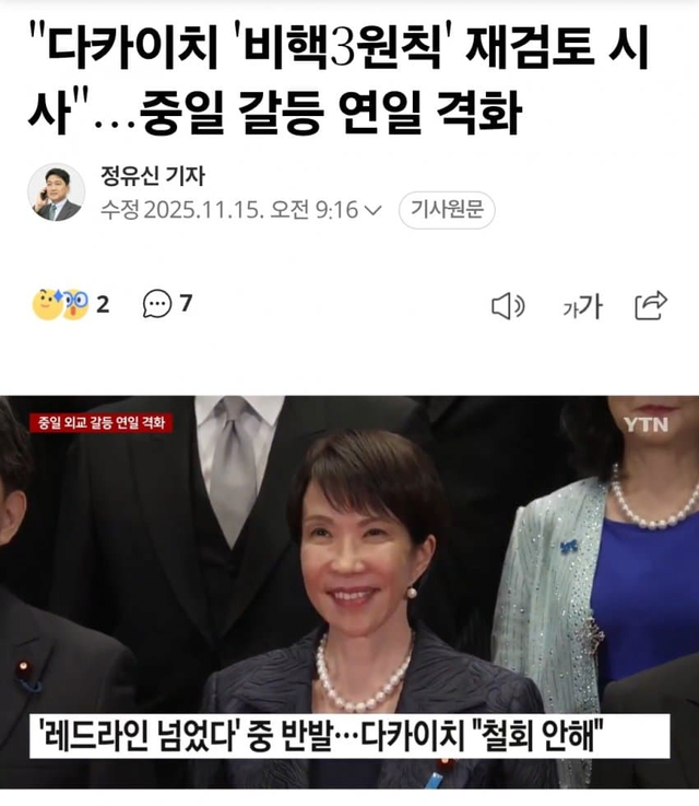 [국제]"다카이치 '비핵3원칙' 재검토 시사"...중일 갈등 연일 격화 | YTN