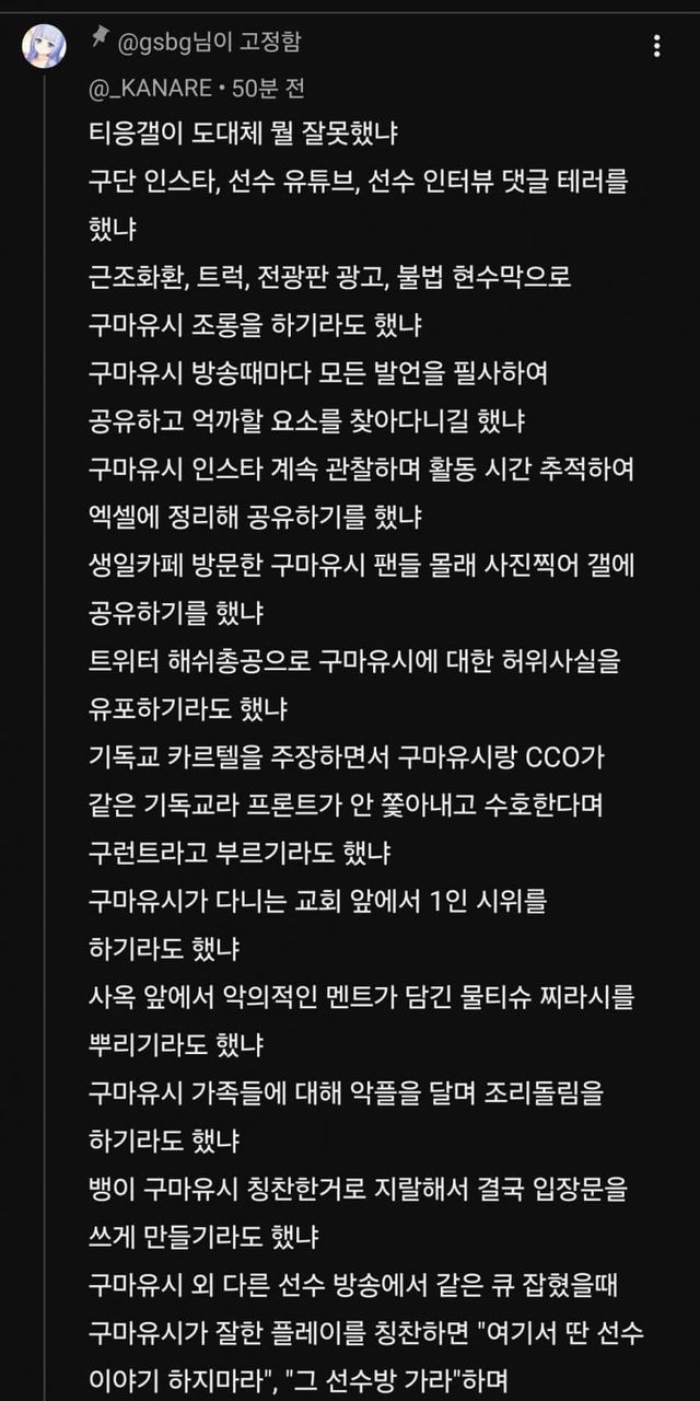 티응갤러들은 구마유시가 "약팀"이 아닌 "강팀"으로 이적하기를 응원하고 있습니다...ㅠ