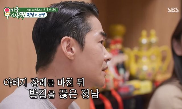 무속인은 배정남의 말을 듣고 갑자기 노래를 부르더니 “아버지가 아들을 너무 보고 싶다고 하신다. 너무 미안하다고 그러신다”고 전했다. 배정남은 잠시 말을 잇지 못하다 “미안할 것 없다. 낳아주고 키워준 것만으로도 감사하다”고 말해 보는 이의 먹먹함을 자아냈다.