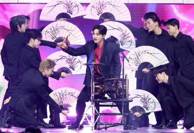 | 트롯 가수 박서진이 부채를 활용해 장구 퍼포먼스를 펼치고 있다.(사진=KGMA 특별취재반) |