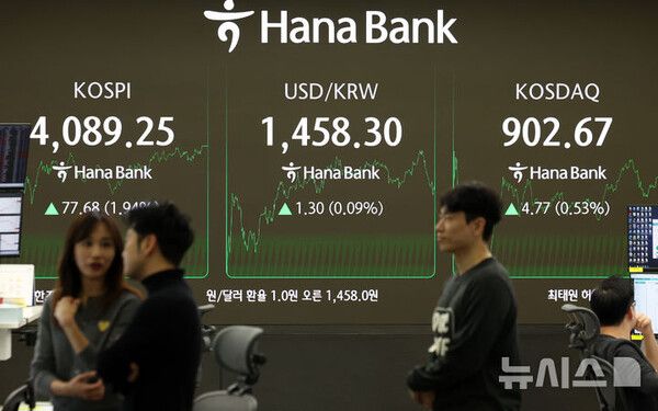 뉴시스 보도에 따르면, 17일 한국거래소에 따르면 이날 코스피 지수는 전장 보다 1.94% 오른 4089.25포인트를 기록했다.
