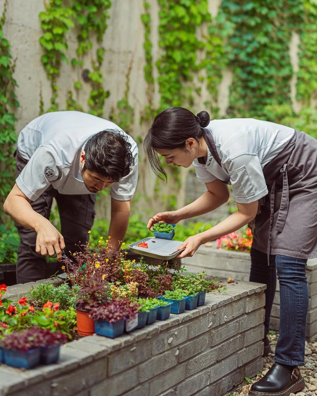 오픈 키친 형태로 운영되어 조리 과정을 눈앞에서 감상할 수 있으며, 2층 창가석은 통유리 너머 정원이 펼쳐져 있어 보다 여유롭고 고요한 식사 경험을 제공한다.