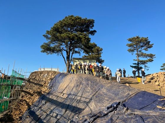 대전유일의사적인계족산성의서문지북측구간보수공사가본격적으로재개되었다.