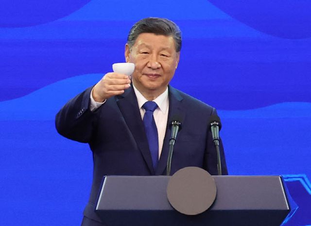 시진핑 중국 국가주석이 1일 경북 경주 소노캄에서 열린 국빈만찬에서 건배사를 하고 있다. (사진=연합뉴스)