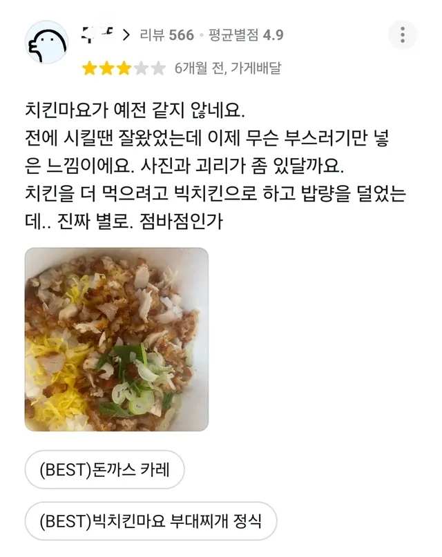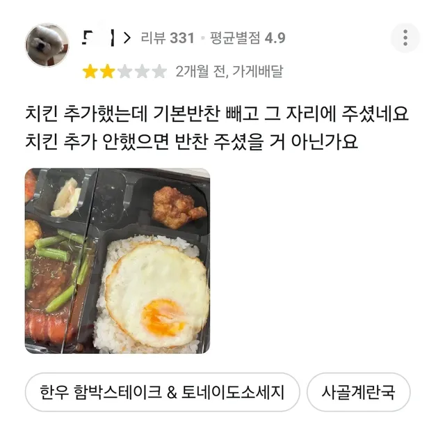치킨 추가하니까 기본반찬 빼고 그자리에 넣어줌