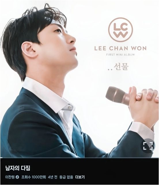 지난 2021년 10월 이찬원의 공식 유튜브 채널(애칭 또튜브)를 통해 공개된 '남자의 다짐' 음원 영상이 누적 1,000만 스트리밍을 넘어섰다.