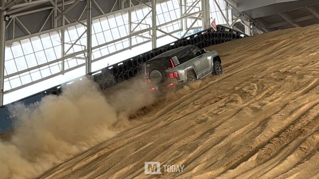차량 내부 디스플레이에는 실시간 경사각이 표시돼 눈으로 확인하기 어려운 차체 자세를 수치로 인지할 수 있었다. 전용 오프로드 모드를 활성화하자 최대 약 42도 경사로도 가속 페달 조작 없이 5km/h 안팎의 속도로 천천히 올라갔고, 내려올 때는 자동으로 속도를 제어해 전통 오프로더에 버금가는 안정감을 보여줬다.