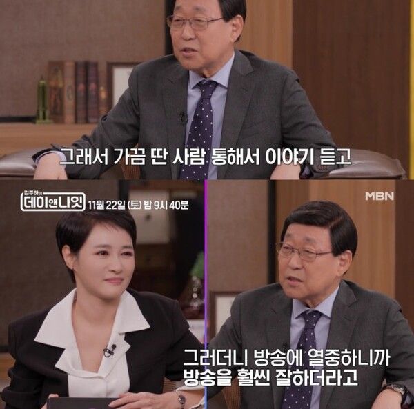 18일 MBN '김주하의 데이앤나잇' 측은 김동건 아나운서가 게스트로 출연한 예고 영상을 공개했다. 이날 김동건은 특유의 유쾌하고 화려한 입담을 선보이며 현장을 화기애애하게 만들었다.
