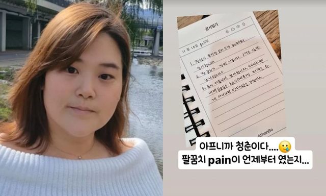 박수지는 18일 개인 계정에 “아프니까 청춘이다. 팔꿈치 통증이 언제부터였는지”라는 짧은 문구와 함께 자신이 작성한 감사 일기를 업로드했다.