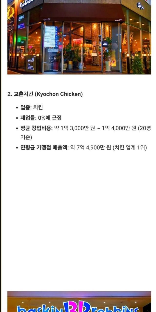 교촌은 폐업률 0%에 수렴하는게 ㄹㅇ 대단하긴한듯