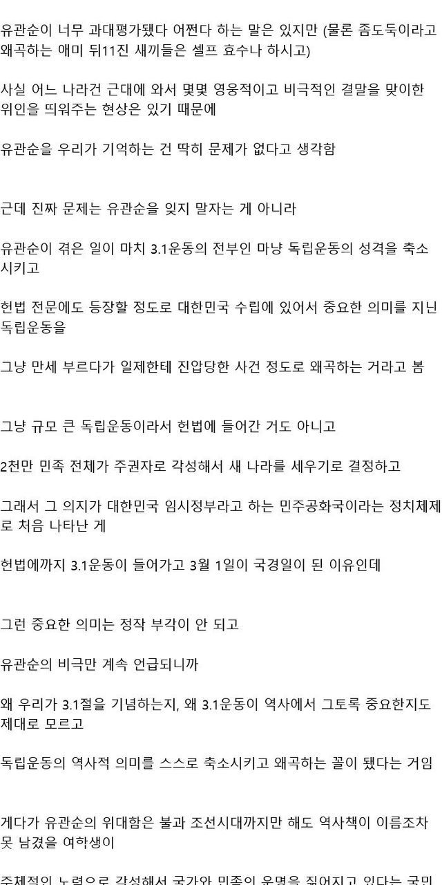 유관순을 기리는 방식과 접근법이 잘못 됐다 - o