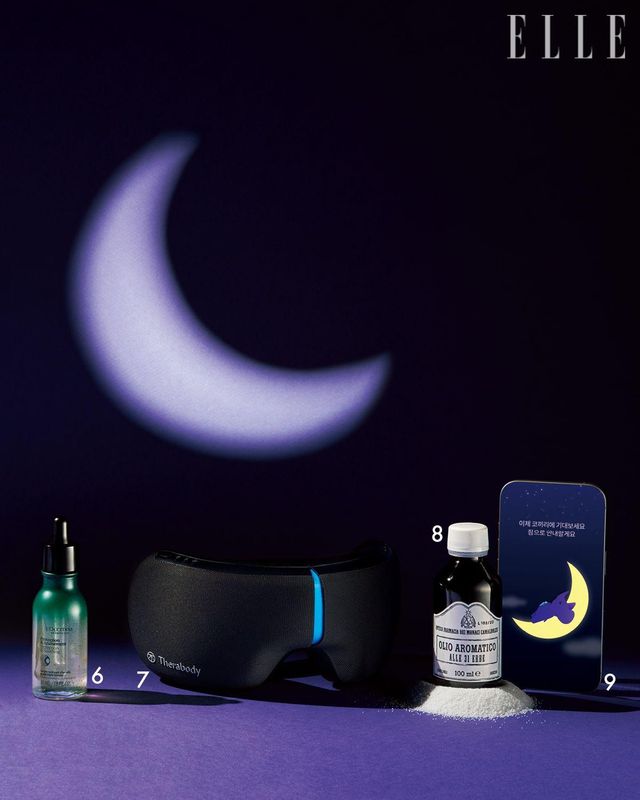 7 빛을 완벽하게 차단하는 100% 암막 기능이 탑재된 스마트 고글. 무게가 가벼워 착용감이 좋고 온열과 마사지 기능이 있어 눈의 피로를 덜어준다. 수면 케어 모드를 설정하면 숙면 유도에 최적화된 진동이 더해져 나도 모르게 ‘스르르’ 잠들게 된다. 스마트고글 2세대, 28만9천원, Therabody.