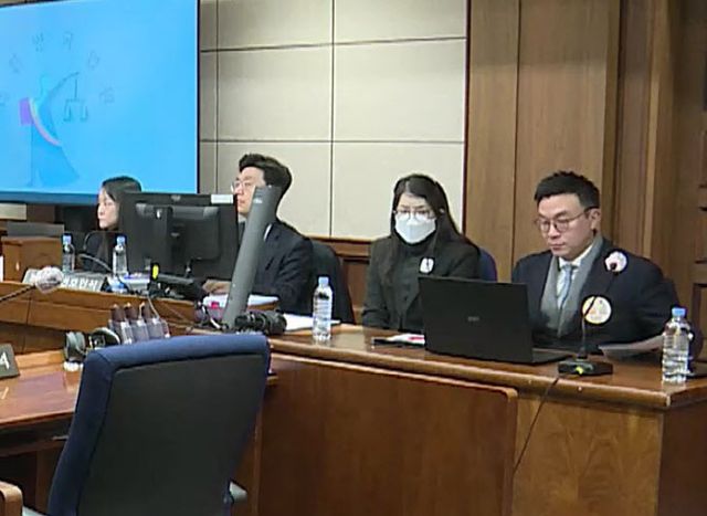 법원에서 19일 진행되는 김건희 여사 재판의 촬영 중계 일부 장면(사진=연합뉴스)