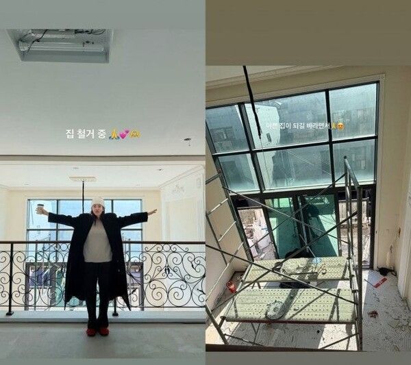 공사 현장을 둘러보며 두 팔을 벌린 손담비는 "예쁜 집이 되길 바라면서"라고 적어 새로운 공간에 대한 기대감을 드러냈다.