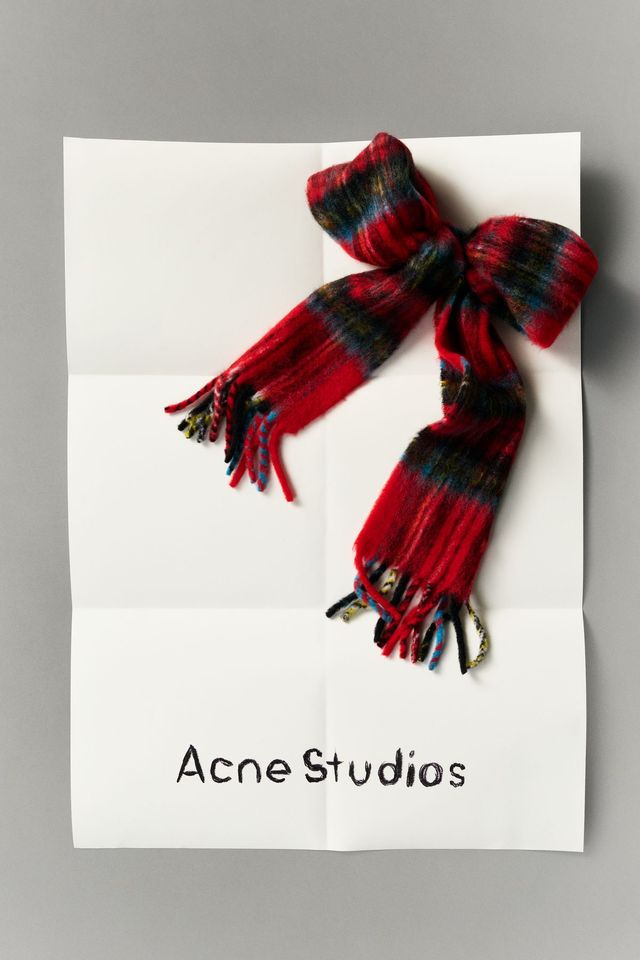 스테디셀러 아이템을 홀리데이 버전으로 재해석해 선보인 아크네 스튜디오. 입술을 연상케하는 ‘카메로 파티’ 숄더 백부터 리본 모티프 스트링이 특징인 ‘멀티 포켓’ 버킷 백, 와이드한 실루엣의 데님 팬츠까지 다양하게 선보였다. 특히 21가지 색상으로 출시된 체크 패턴 모헤어 스카프에는 자수로 이니셜을 새길 수 있다고 하니 연말 선물로 제격일 듯.
