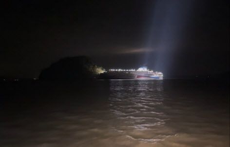 소방청과 목포 해경에 따르면 이날 오후 8시 17분쯤 여객선의 선수가 섬에 올라탔다는 승객 신고가 접수됐다. 해당 여객선에는 승객 246명과 선원 21명이 탑승한 것으로 확인됐다.